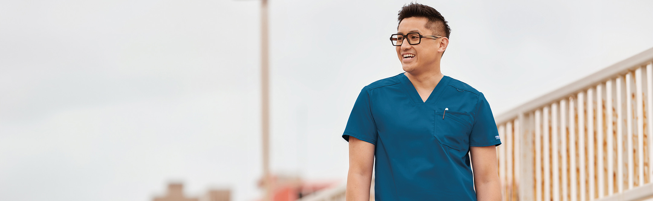 Butter-Soft Originals On The Clouds Morning Dew Women’s 3-Pocket Criss Cross Printed Scrub Top