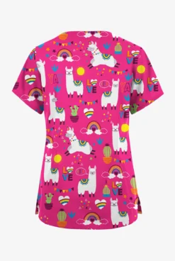Butter-Soft Originals Llama Love Fuchsia Women’s 6-Pocket Scallop Neck Printed Scrub Top