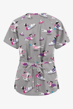 Butter-Soft Originals Playful Dachshunds Women’s 3-Pocket Mock Wrap With Ties Printed Scrub Top