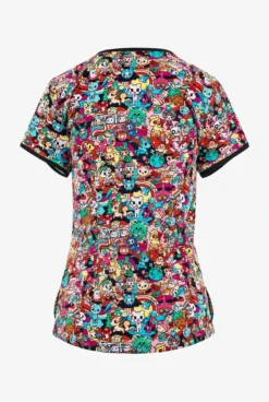 Healing Hands Wild Harmony Abstract Women’s 3-Pocket STRETCH Zip Neck Print Scrub Top
