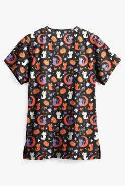 UA Halloween Kitties Black Printed Women’s 3-Pocket V-Neck Scrub Top