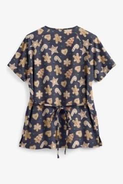 UA Gingerbread Cookies Granite Women’s 2-Pocket Mock Wrap Print Scrub Top