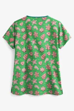 UA Gingerbread Cookies Gecko Women’s 3-Pocket V-Neck Print Scrub Top