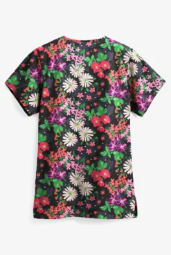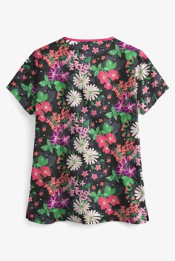 UA Garden Paradise Black Printed Women’s 4-Pocket Princess Seam Scrub Top