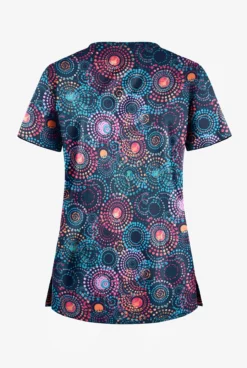 Butter-Soft Pop Circles Navy Women’s 1-Pocket V-Neck Tuck-In Print Scrub Top