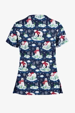 Butter-Soft Polar Holiday Silver Women’s 4-Pocket Rounded V-Neck Printed Scrub Top