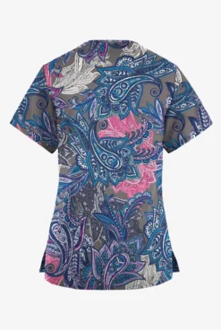 Butter-Soft Originals Layered Paisley Grey Stone Women’s 4-Pocket Rounded V-Neck Printed Scrub Top