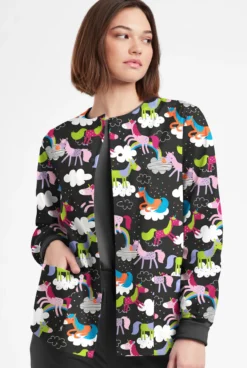 Butter-Soft Originals On The Clouds Women’s 3-Pocket Warm-Up Printed Scrub Jacket