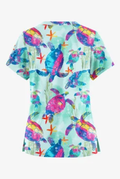 Butter-Soft Originals Turtle Journey Galaxy Women’s 6-Pocket Scallop Neck Printed Scrub TopĀ