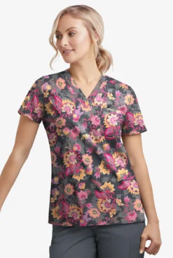 UA Butter-Soft STRETCH Happy Morning Floral Women’s 2-Pocket V-Neck Print Scrub Top