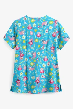 UA Butter-Soft STRETCH Lemur Love Turquoise Women’s 4-Pocket Criss Cross Print Scrub Top