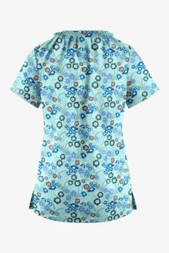 UA Butter-Soft STRETCH Petite Floral Aqua Moon Women’s 6-Pocket Peasant Style Print Scrub Top