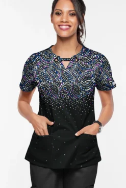UA Butter-Soft STRETCH Roman Mosaic Womenâs 4-Pocket Grommet Neck Detail Printed Scrub Top