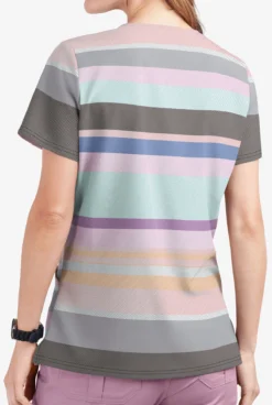 UA Butter-Soft STRETCH Stripes On Stripes Cool Grey Women’s 2-Pocket V-Neck Print Scrub Top
