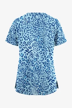 UA Butter-Soft STRETCH Tiger Fantasy Caribbean Blue Women’s 3-Pocket V-Neck Mock Wrap Scrub Top