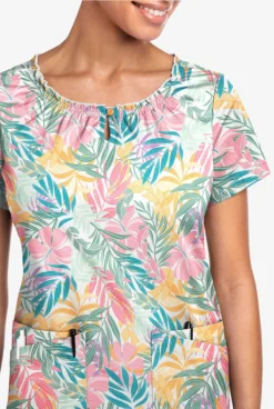 UA Butter-Soft STRETCH Tropical Mix Women’s 6-Pocket Peasant Style Printed Scrub Top