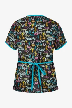 UA Easter Treats Turquoise Women’s 3-Pocket V-Neck Print Scrub Top