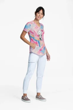 Cherokee Tooniforms Illumination Friends Together Women’s 1-Pocket V-Neck Print Scrub Top