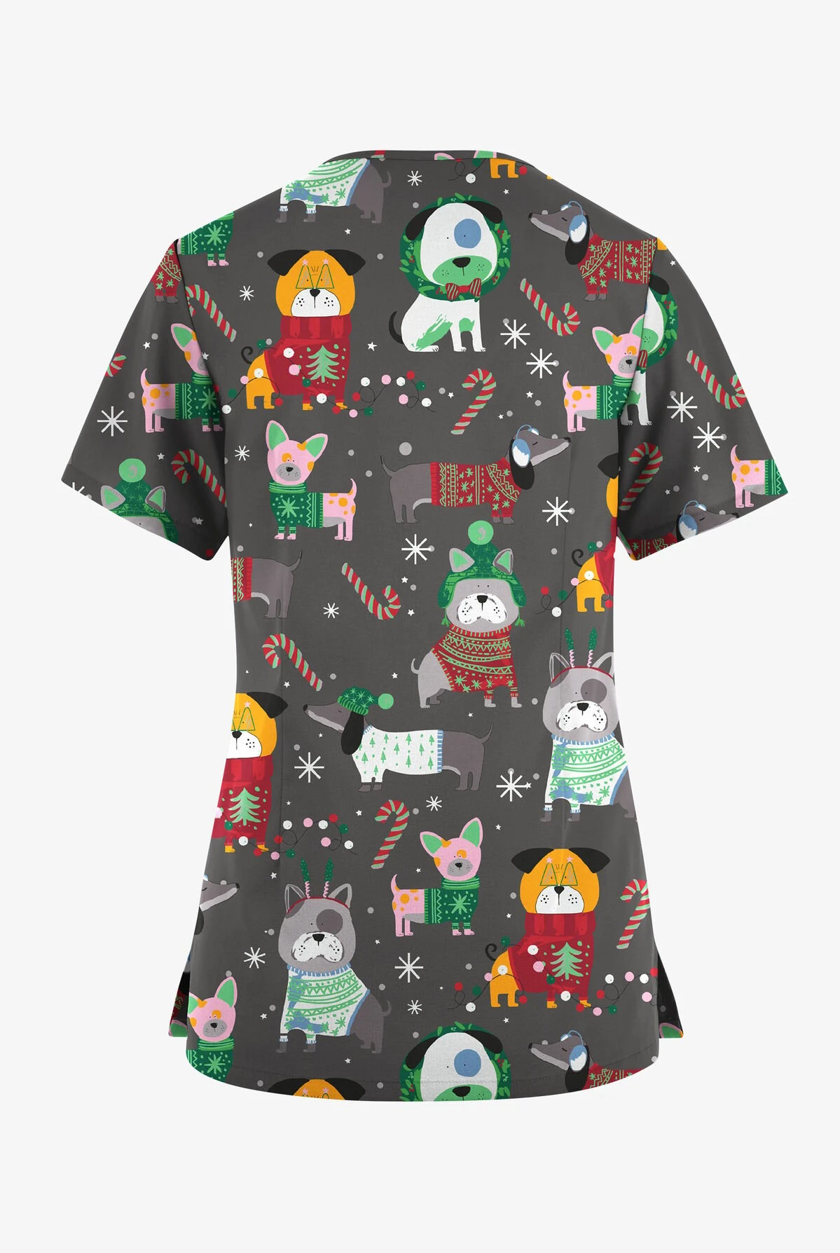 - Features colorful pups in cozy sweaters with snowflakes and candy canes