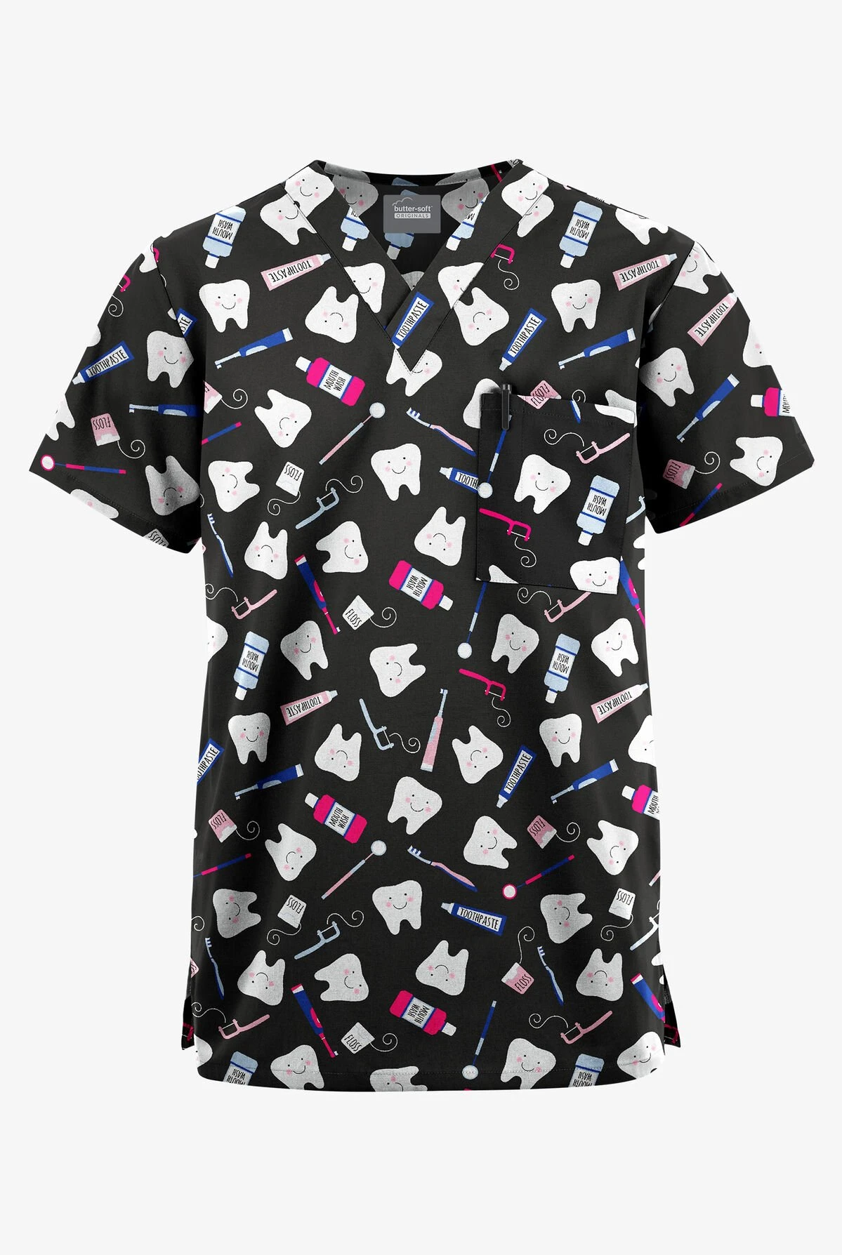Suitable for both men and women, our unisex v-neck scrub top is complete with added side slits for a comfortable fit around the hips. Plus, functional chest pockets gives you quick access to your medical tools.