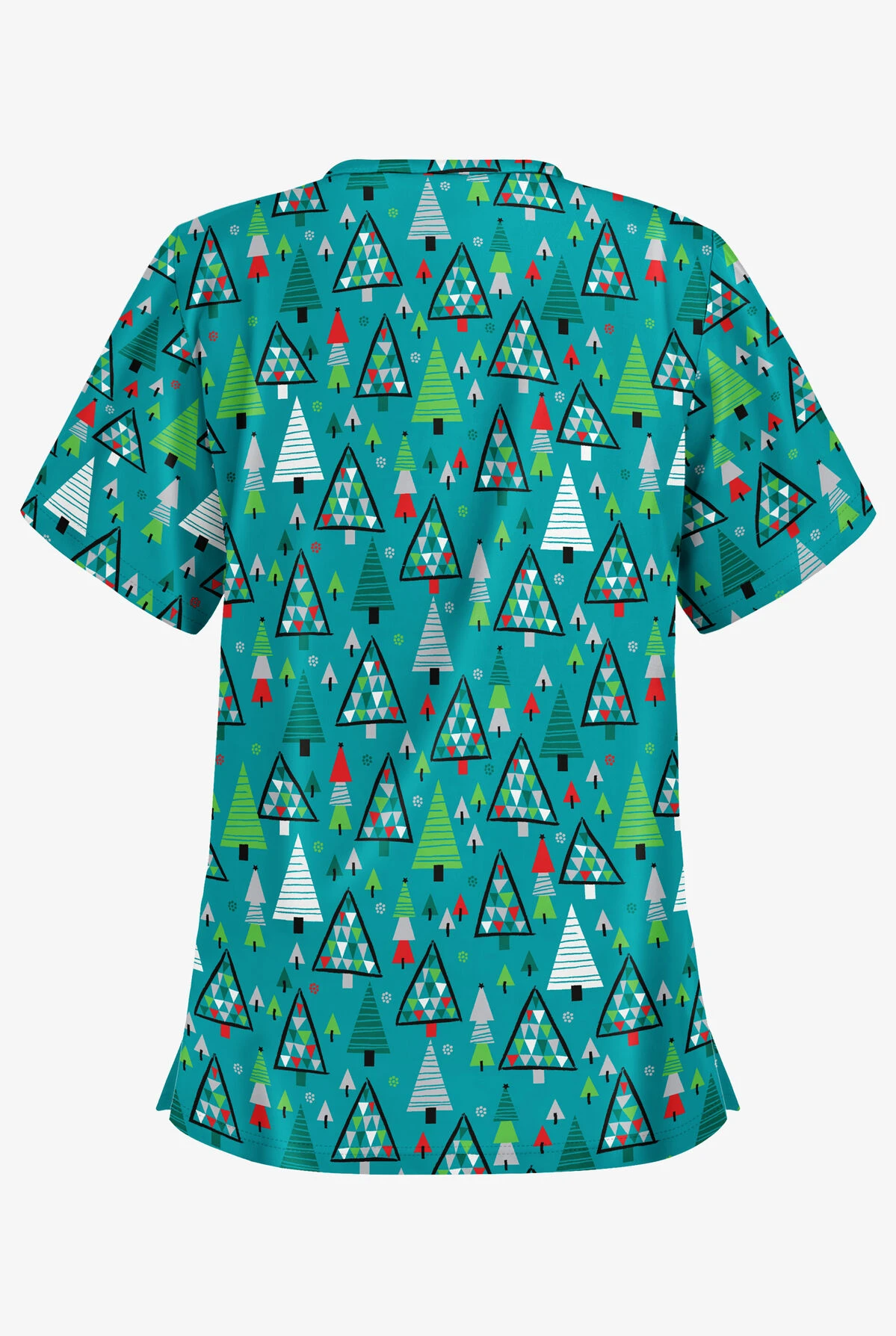 Looking for a scrub top with a little extra breathing room? Designed with a relaxed fit in a classic V-neck shape, our two-pocket top is the one. A print that seems inspired by vintage Christmas shows of the 60s. A sea of graphic trees ā so fun.