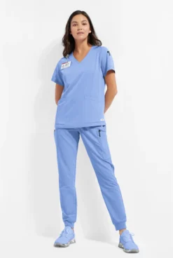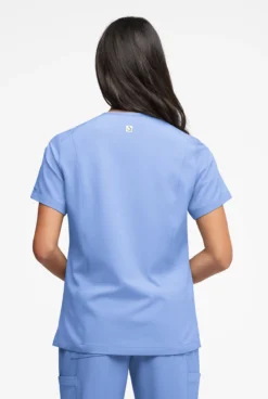 Ruby women’s 5-pocket v-neck scrub top features a modern fit with feminine curved v-neck and side vents for ease of movement. It has flattering princess seams on front and back for a better fit and an id loop on wearers right shoulder. Every style in our Resurge collection is thoughtfully designed and responsibly sourced. Made of 100% recycled polyester (the most of any scrubs brand!), plus recycled trims and zippers. Even the bag it comes in is recycled. Long story short Resurge lets you feel good and do good.