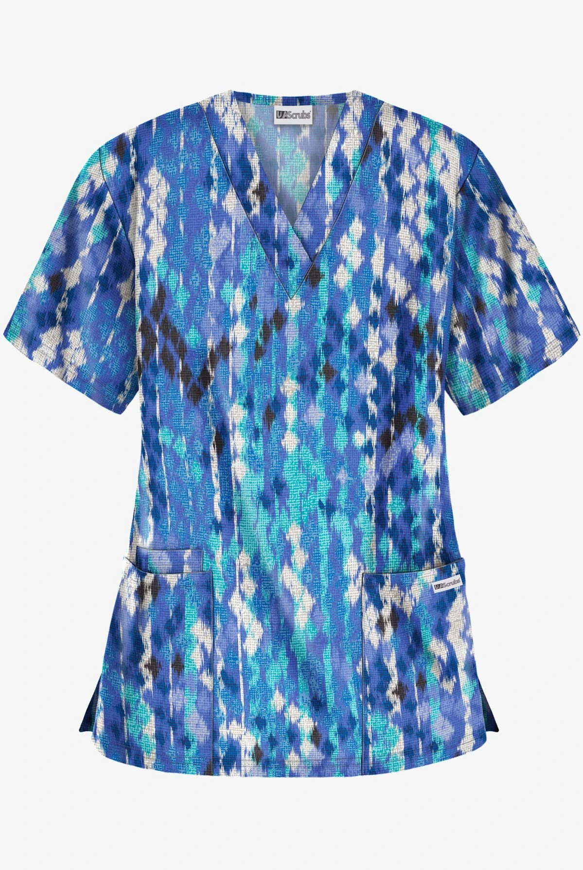 The UA Best Buy Antik Ikat Royal Women’s 3-Pocket V-Neck Print Scrub Top is made from easy-care, soft material that will provide you with long-lasting comfort and durability. You will find wide patch pockets that provide you with ample room to store all your medical tools. We’ve also included an additional cell phone pocket. The reinforced side slits at the seams assure a generous fit. This scrub top comes in a variety of fade-resistant colors and is made with easy-care wash-n-wear fabric. Fabric content is 55/45 Polyester Peached.