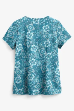 The UA Brocade Floral White Printed Women’s 2-Pocket Mock Wrap Scrub Top is the newest addition to our Best Buy Collection, our mock wrap scrub top can be worn without the worry of opening since it has been sewn closed in the front. This mock wrap top can also be cinched as much or as little as you like with the back ties. For storage, there are two front patch pockets. The side slits included allowing for ease of mobility around the office. This scrub top comes in a variety of fade-resistant colors and is made with easy-care wash-n-wear fabric. Fabric content is 55/45 Cotton/Poly.