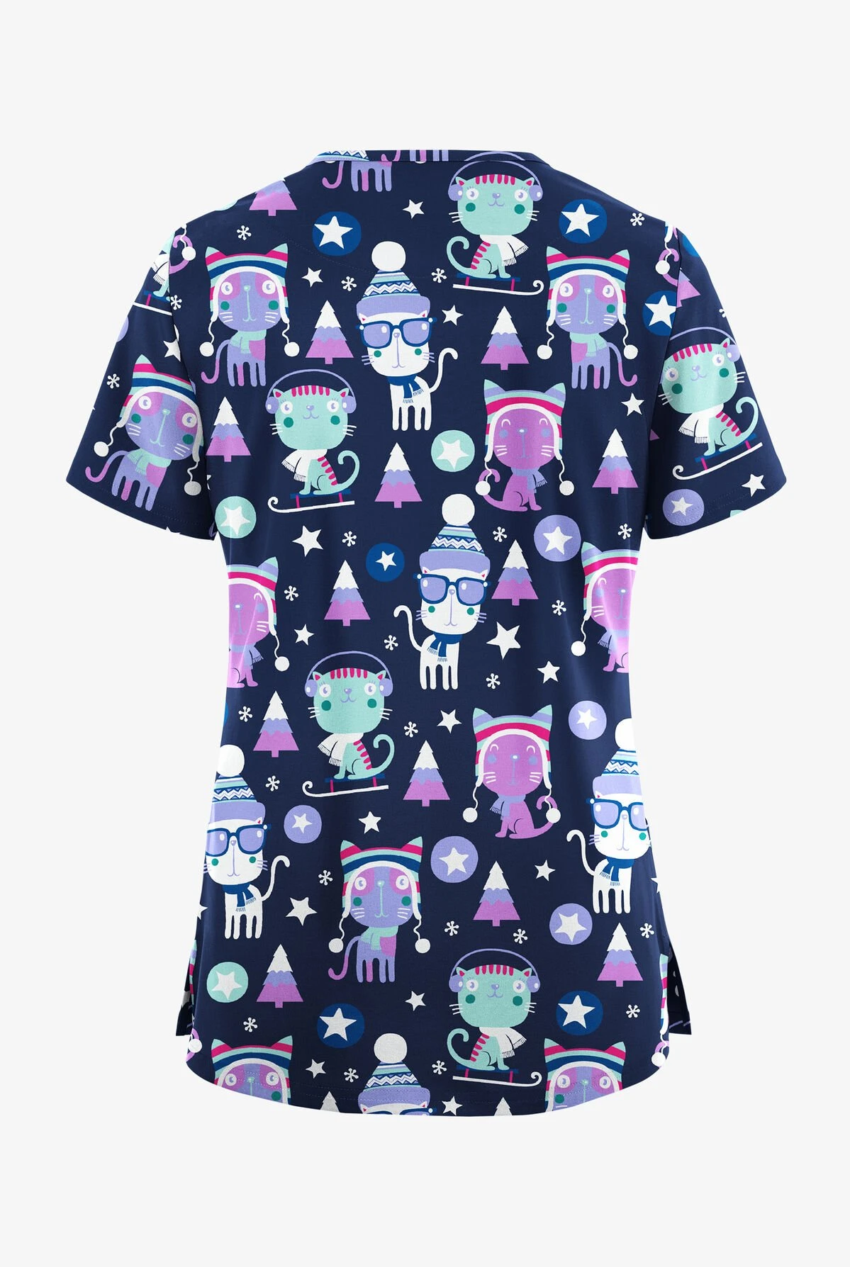 This UA Butter-Soft STRETCH Women’s Short Sleeve V-Neck Scrub Top with Sport Trim Detail features a classcic fit and a V-Neck with contrast sporty stripe trim. It has three pockets in total; 2 large pockets, and 1 pen pocket. There are side slits for range of motion.