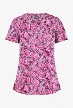 - Features a rich shades-of-pink paisley print on eggplant
