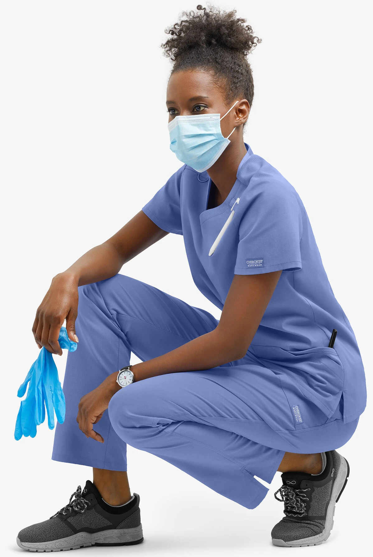 Engineered for busy professionals, our exclusive Cherokee Workwear Professionals Active Mid-Rise Tapered Leg Pants provide streamlined pocket storage with feel good, look good style. Each classic design in the Cherokee Workwear Professionals collection is built for flexibility, fit for mobility, and offers a modern, clean look in a 2-way stretch fabric.