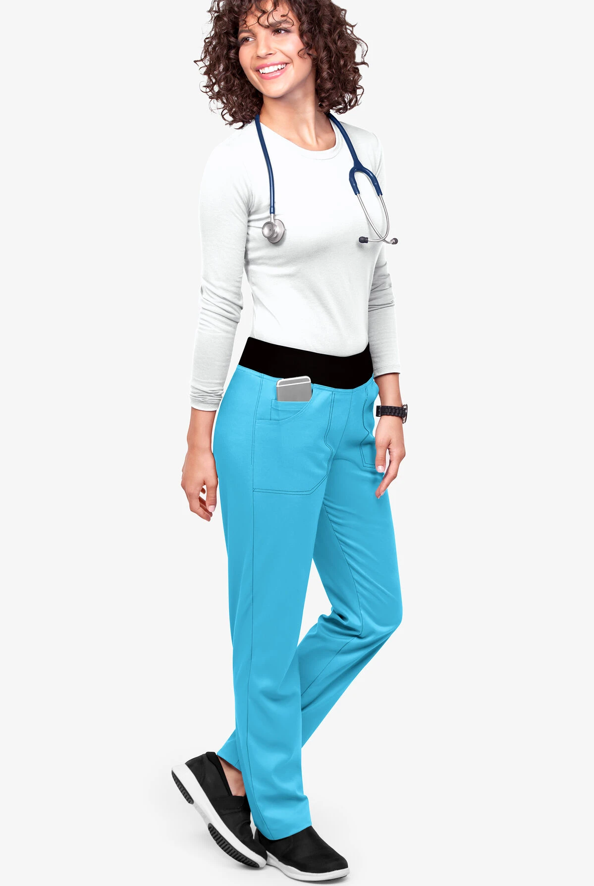 “Like the pull-on style and wide waistband.” “Soft, moves with you.” “Love the material.” Simply put Our straight leg women’s yoga inspired scrub pants have everything you need in a pair of scrubs. Our UA Flex2 Scrubs collection offers comfortable, classic styling and is made from 2-way stretch easy care comfort fabric.