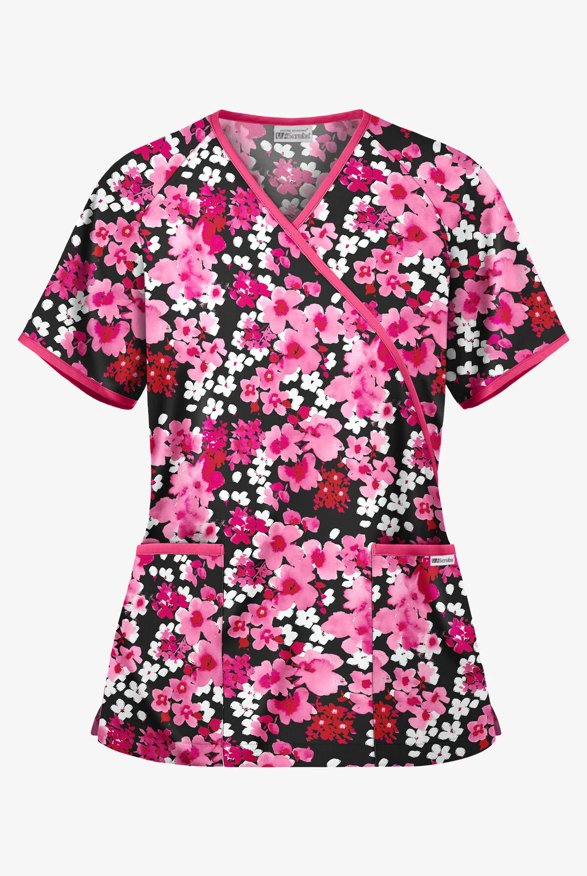 Butter-Soft Originals Summer Starburst Women’s 3-Pocket Mock Wrap With Ties Printed Scrub TopĀ
