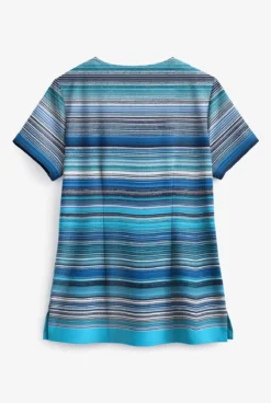 UA Butter-Soft STRETCH Artistic Stripes Navy Women’s 2-Pocket V-Neck Print Scrub Top